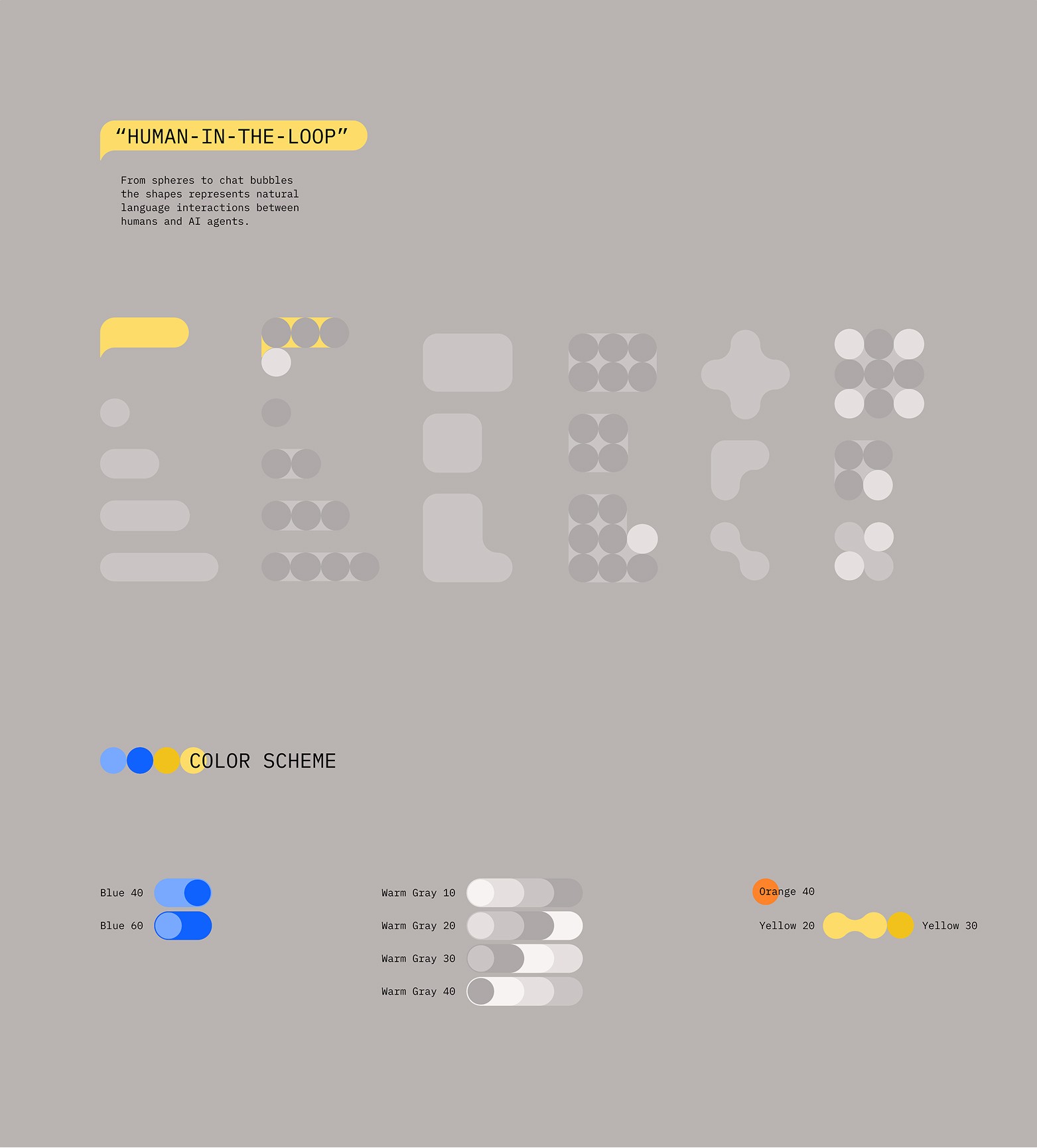 The visual language introduces organic shapes inspired by chat bubbles, symbolizing the constant dialogue between humans and machines while also referencing the product’s natural language capabilities. Motion design brings a sense of humanity and playfulness to the system, reinforcing the idea of collaboration rather than replacement.